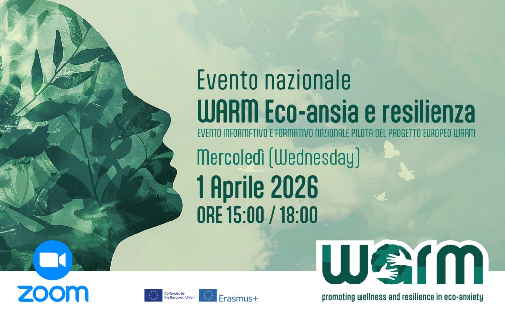 Un evento dedicato a un tema sempre più attuale: l’impatto dei cambiamenti climatici sulla nostra salute mentale. Durante l’incontro verrà presentata la prima piattaforma europea sviluppata per affrontare l’eco-ansia, con strumenti concreti e percorsi formativi pensati per comprenderla e gestirla. Mercoledì 1 Aprile 2026 Ore 15:00 – 18:00 Online su Zoom Presentazione del progetto con […]